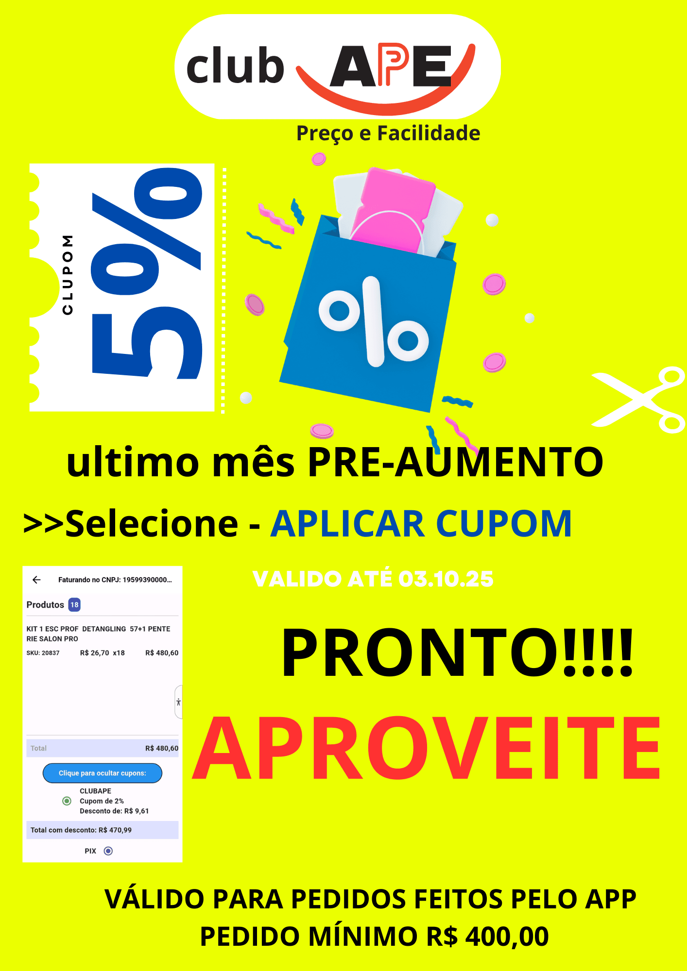 Condição especial para quem compra pelo app No Club APE, quem é lojista, distribuidor ou